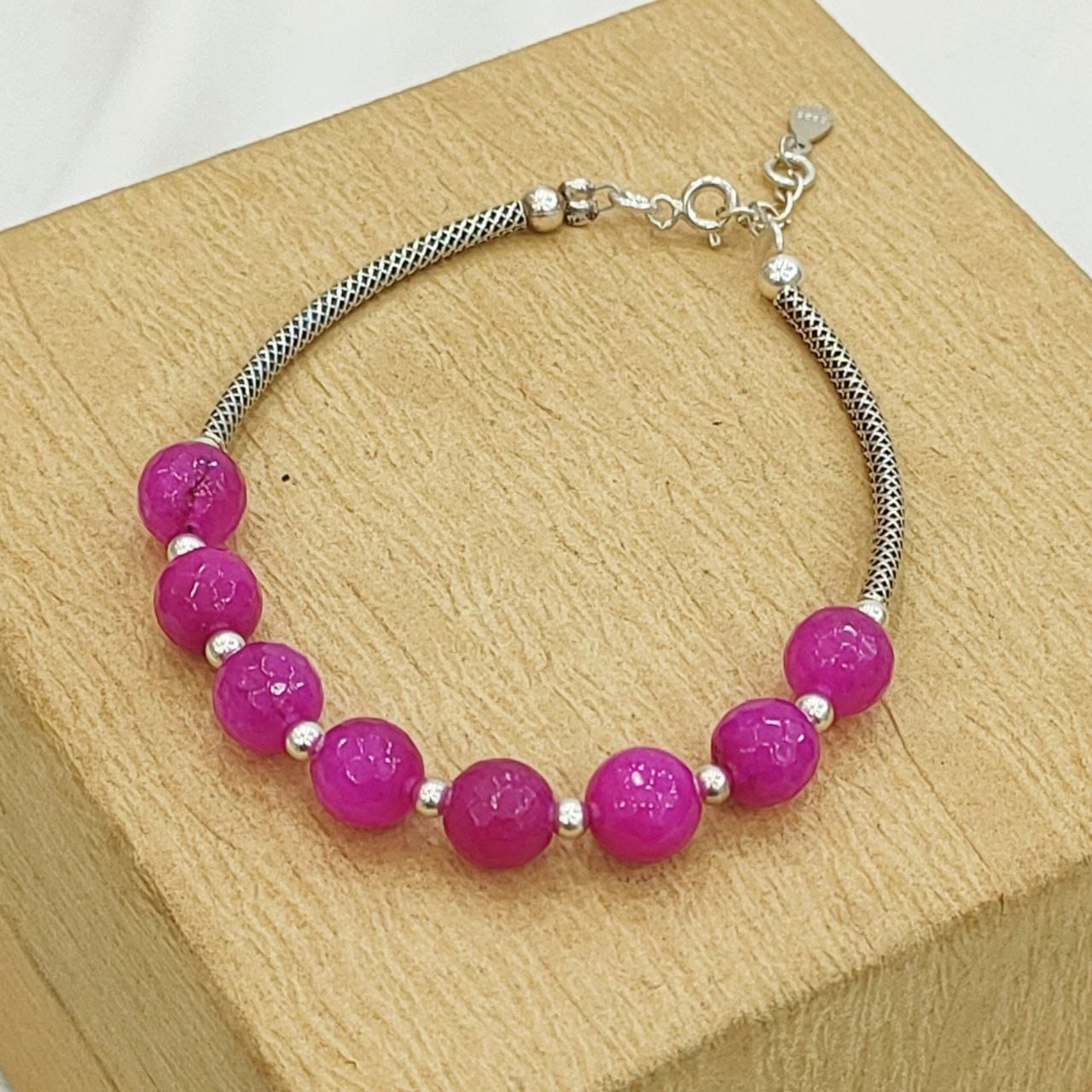 Silver fuchsia Pearls Bracelet / أنسيال فضة مع لؤلؤ فوشيا - Bahja Gifts