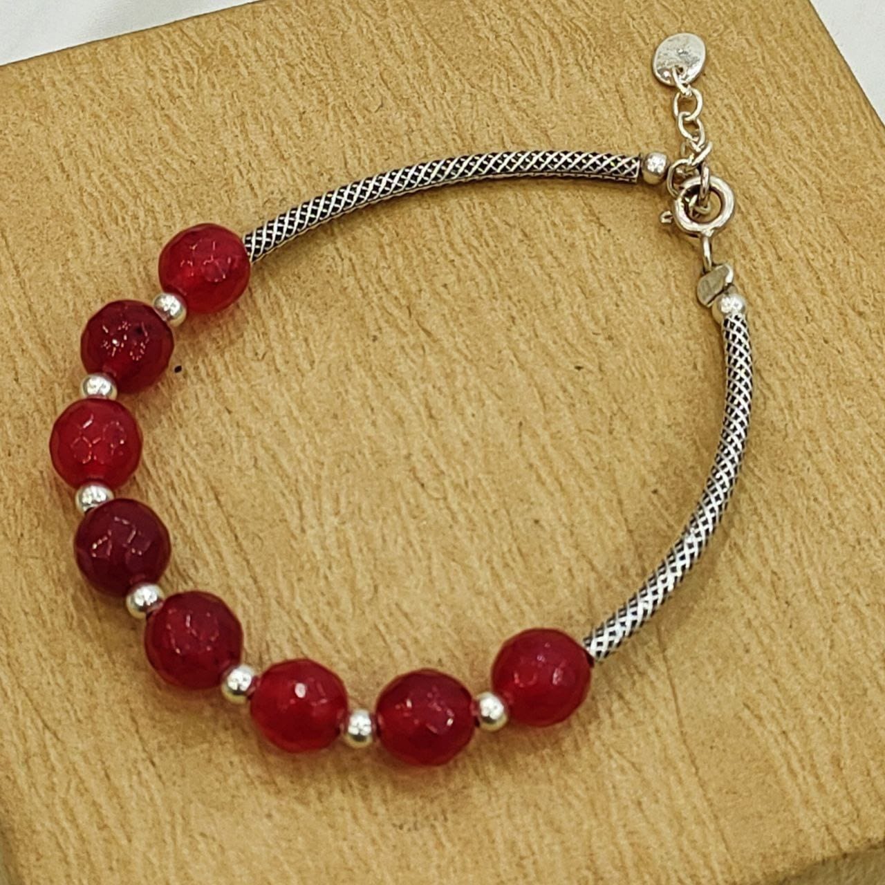 Silver Red Pearls Bracelet / أنسيال فضة مع لؤلؤ أحمر